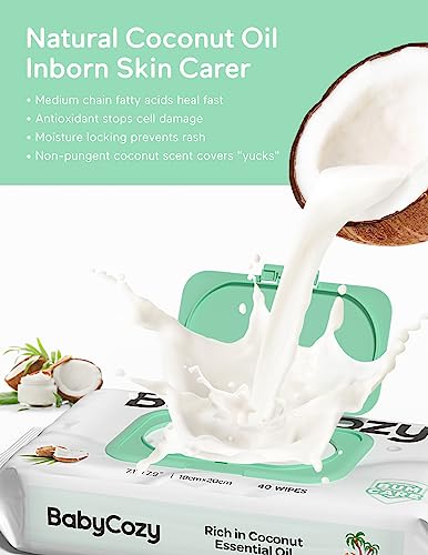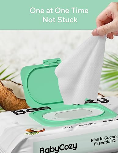 Baby Wipes, Cleansing & Moisturizing 2-in-1 Babycozy Sensitive Baby Wipes, 100% Biodegradable, Hypoallergenic Baby Coconut Wipes Moisturize Every Cleanse, 120 count (3 pcs), Packaging May Vary