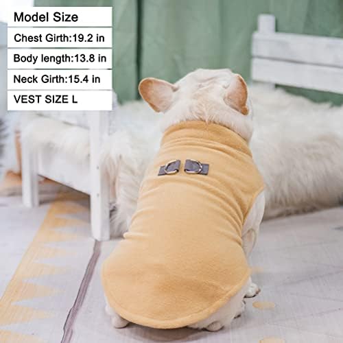 [100% Polyester Material] Machine Washable, which is easy to clean ,do not need hand wash. Soft Fleece to Keep Your Small Dog Warm All Winter Long, Made with 100% polyester to keep moisture out like freezing rain or snow, and to help keep warm air in, so your dog always stays warm. This small fleece dog vest is safe, durable, and made to last. [Double D-rings For Leash Attachment] It features two D-rings on the back to use for walks. It is easy to attach the leash,There are two pieces of leather stitched well into the clothes ,so stronger than one o-ring fleece coat . One O-ring breaks down easily, you could lose your dog if the leash attachment is not strong. [Pullover Design] Our fleece dog vest is Easy On and Easy Off ,it is a pullover that you can quickly and easily put on your dog and head outside .There is no Velcro or zippers which would hurt your pets hair because it will take long time to preparing. Plus, elastic ribbing on the neck, no pressure and strangulation on the neck, giving the dog more space. [Size Fits Small and Medium Dog ] These fleece jackets fit most small and medium cats and dogs, Before purchase,Please measure your pets chest size with the soft tape ,we recommend you choose the neck size bigger than the size of your dog head so can easily put on. [Bright colors and Leash Hole] With 14 different colors, various colors can meet your pets daily wearing needs. Choose from dog/cat warm sweater in sizes of range from XS-XL. Finding warm dog pullovers that fits and looks trendy on your pup should be a walk in the park. Except the D rings, there is the leash hole too,if you need to attach the leash to the harness or collars of your pets instead of leash the elastic clothes.