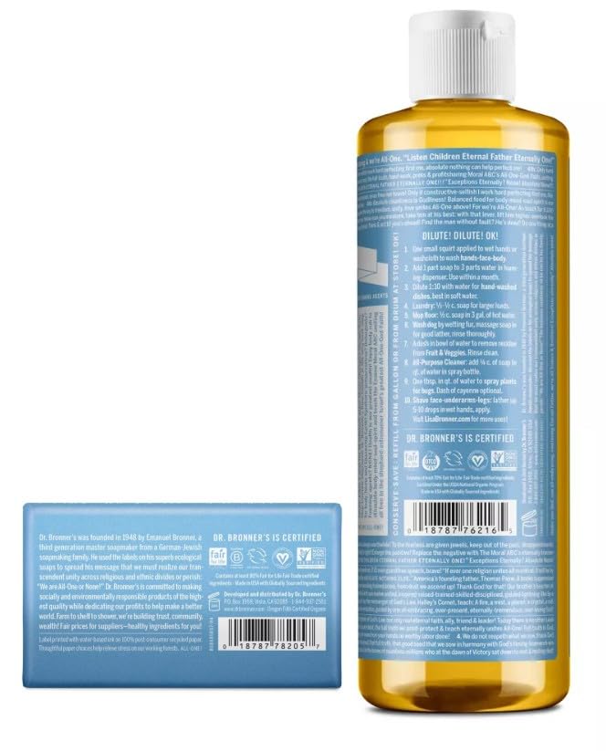 Bronner’s unscented baby 16 fl oz soap and unscented baby 5 oz bar (18 in 1)