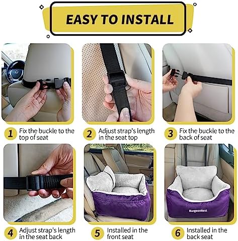Easy to Install: Adjustable buckle design, the car seat for dogs can be installed easily. Just fix the buckle to the top and back of the seat and adjust the length of straps. You can install it in both the front and back seat of your car as you like. And it fits most kinds of car seats and car types