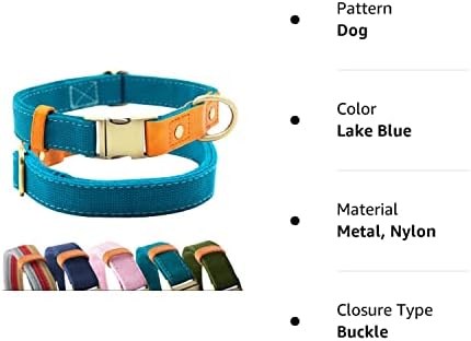 Canvas Nylon Dog Collar Durable and Adjustable Classic Pet Collars with Quick-Release Metal Buckle and D-Ring for Small Medium Large Boy and Girl Dogs (S, Lake Blue)