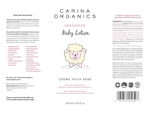 Carina Organics Extra Gentle Baby Lotion, Organic & Natural, for Sensitive Skin, Whole Body, 8 fl oz