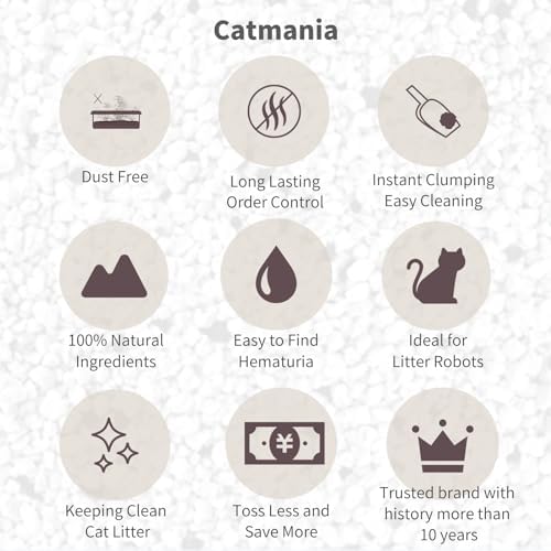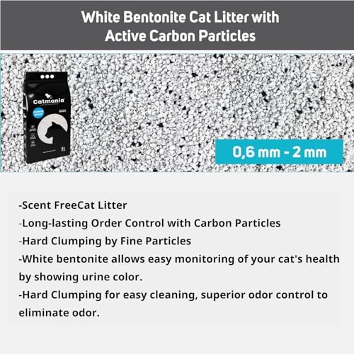Introducing Catmania: Our Turkish White Cat Litter, adored by celebrities! Crafted from premium sand sourced from a high-quality Turkish white Bentonite mine, Catmania sets a new standard. Its Turkish white Bentonite composition offers easy health monitoring for cats and a clean, stylish look for your home. Testing has confirmed minimal dust unique to this mineral.Catmania is premium, well-balanced cat litter. Experience easy cleaning with hard clumping and superior odor control, verified through comparison tests against competitors. -Weight: 9.37lb x 4 Bags = 37.5 Pounds -Carton Size: 7.9 x 15.7 x 11.0 Inches -Unsented & Natural Ingredients