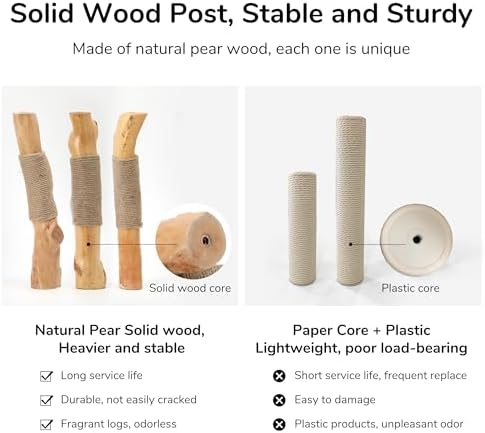 Cat Scratching Post, 20″ Plant Style Kitten Scratcher, FUKUMARU Solid Wood Cat Post with Bed, Small Cat Tower Tree with Natural Jute Rope for Indoor Kitten & Cats