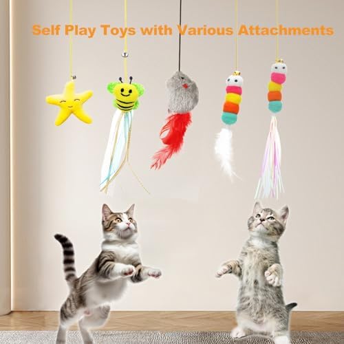 Hand Free Cat Toy Set: Atosun Interactive cat toys set include 2 pcs suction cup, 2 pcs cat wand toy with 4 pcs feather and worm toy replace. 6pcs door hanging cat toy. Full pet toys make you hand free or you can use the wand toy to interact with cats indoor.