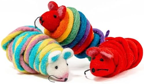 Catch a Mouse by The Tail Wool Cat Mouse Toy with a 6-Ft Tail for Indoor Cats Kittens. Cute Toy Mouse, Mouse Cat Toy, Rat Plush Toy, Fake Mice. No Catnip. Pride (Rainbow)