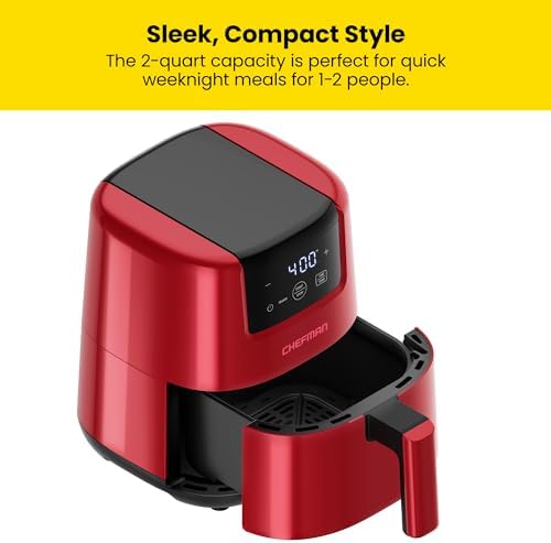 CHEFMAN 2 Qt Mini Air Fryer – Digital Space-Saving Compact Air Fryer with Nonstick and Dishwasher Safe Basket, Quick & Easy Meals in Minutes, Features Digital Timer and Shake Reminder – Red