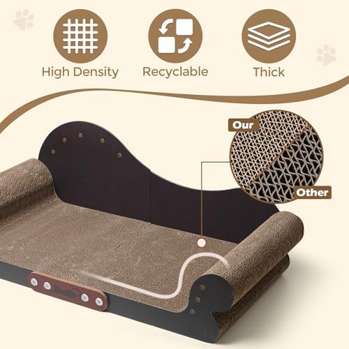 UNIQUE CAT COUCH DESIGN – Our exclusive sofa design is tailored for our feline friends. Cats can rest their heads on the armrest for a cozy nap. The full scratching cardboard surface can help your cats freely enjoy nail crawing.