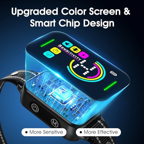 Large LED Color Screen: The larger color display makes it easier to use and read.Automatically Stop Dog Barking: With advanced smart chip,DINJOO dog bark collar for large dog can accurate detecte dog barking without remote.No False Trigger&8 Adjustable Sensitivity: DINJOO dog bark collars for small dogs are activated by motion and barking. The dog bark collar for medium dogs also has 8 adjustable sensitivity setting to help reduce false triggersIP67 Waterproof:IP67 waterproof design to ensure product quality stability, protect dog bark collar from splash, rain, snow4 Human and Effective ModesPowerful Battery and Protection Mode:The dog bark collar will temporarily stop working for 1 minute if it triggers 6 timesAdjustable Collar for 8-120 lbs dogs:The dog bark collar circumference is suitable for most pet dogs.Up to 15 days of Use and Charging Protection Technology: Charge in 2 hours with 1-touch charging works for about 15 days