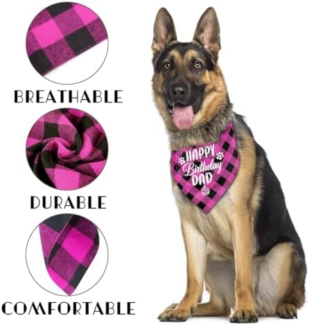 Dog Bandana, Happy Birthday Dad Dog Bandana, Dog Scarf Classical Plaid Printing, Dog Scarf Accessories, Dog Bandana Pet Scarf, Pet Scarf Accessories, Dog Bandana Gift for Dad Birthday Party (K28)