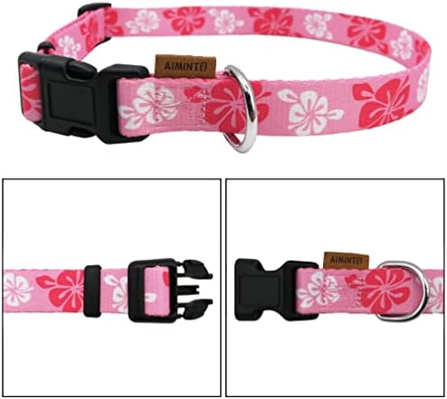 Dog Collar, Cute Floral Pattern, Soft and Adjustable Collar with Quick Release Buckle (XS (Neck 9-13″, Width 3/8″), Hawaiian Pink)