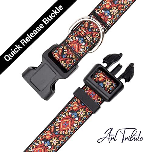 YOUR DOG DESERVES THE BEST – Art Tribute brings you a comfortable collar for small, medium and large dogs. Made of tough, durable fabric with a quick release buckle that will last a lifetime. Maximum comfort for your dog and easy to use! WALK YOUR PUP IN STYLE – These trendy art and floral collections of dog collars will make your pup stand out! They are waterproof and odor proof and super easy to use. IT’S SO SIMPLE TO MAKE THE RIGHT CHOICE – Measure your dog’s neck at its widest point. Always ensure that you leave a wiggle-room of 2 fingers. Pick your style and you’re on your way to having the most fashionable pooch on the block. OUR EXCEPTIONAL SIZE RANGE: SMALL 10-15” long x ⅗” wide will fit: Cavalier King Charles, Pekingese, Miniature Schnauzer, Pug, Scottish Terrier. MEDIUM 12-18” long x ⅘” wide for Beagle, Border Collie, French Bulldog. OUR EXCEPTIONAL SIZE RANGE: LARGE 15-22” long x 1” wide for Boxer, Golden Retriever, Labrador Retriever. EXTRA-LARGE 19-26” long x 1½” wide for Bernese Mountain, Rottweiler YOUR SATISFACTION GUARANTEED – We have complete confidence in our dog collar. That’s the reason we can give you a lifetime guarantee. Our dog loving customer support team is always on hand