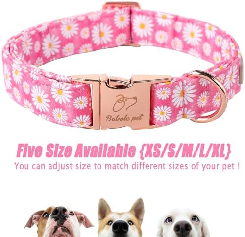 Dog Collars Summer Pink Daisy Flower Dog Collar with Safety Metal Buckle Adjustable Puppy Collars for Small Medium Large Dog,Boy&Girl Dog Collar Gift,Neck XL