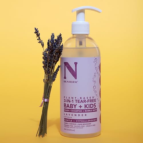 Dr. Natural 3-in-1 Tear-Free Baby Plus Kids Soap, Lavender, 16 oz – Plant-Based Baby Shampoo and Body Wash – Sulfate and Paraben-Free – Hypoallergenic for Sensitive Skin – Infused with Essential Oils