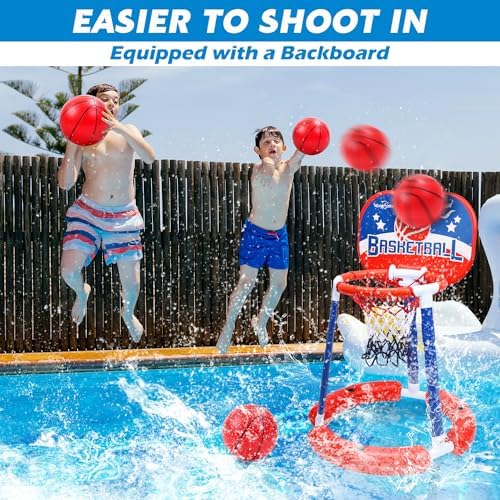EagleStone Pool Basketball Hoop,Kids Swimming Pool Basketball Hoop Set with Backboard,3 Balls &Pump for Summer,Indoor Basketball Hoop for Toddler,Pool Games Toys for Kids Adults Ages 2-4 3-5 6-8 12