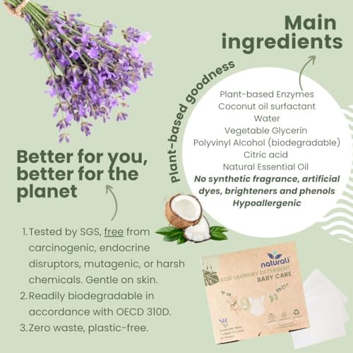 COMPACT AND CONVENIENT – Compact and lightweight, they do not take up a lot of space in your suitcase, making them perfect cruise ship essentials or travel accessories for women. SINK AND HAND WASH SOAP – Perfect for sink or hand-washing, this travel soap is a great alternative to traditional liquid detergent when it comes to cleaning clothes while traveling. GREAT TRAVEL SIZE ITEM – Our compact sheets are designed for travelers in need of mini travel essentials that can be easily packed without taking up much space in your bag. ECO-FRIENDLY FORMULA – Made with plant-based active ingredients, our laundry sheets deliver powerful and eco-friendly cleaning performance while not causing harm to your health. A NON-TOXIC FORMULATION – Made with safe, plant based active ingredients which allows you to take care of all types dirty clothing from jeans to silk pieces on our travels without any worry! TOUGH ON STAINS – Experience the stain-removing power of our detergent sheets, tackling even the most stubborn stains on your clothes. REFRESHING SCENT – Enjoy the soothing and calming aroma derived from natural lavendar essential oils, leaving your laundry smelling delightful. ECO-CONSCIOUS PACKAGING – Our product comes in fully recyclable packaging, made from recycled paper, contributing to a sustainable choice. COST EFFECTIVE AND EASY TO USE – Our packets are not only cost effective but they’re incredibly easy to use too; simply add them directly into the sink with your laundry before putting your clothes in