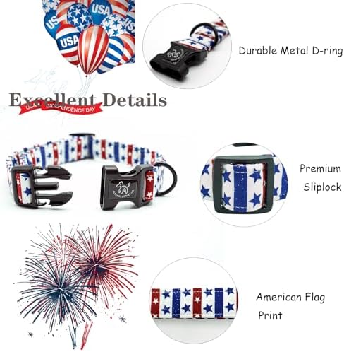 Elegant little tail Independence Day Dog Collar, Holiday Pet Collar Patriotic Dog Durable Dog Collars Girl or Boy Soft Pet Gift Adjustable Dog Collar for Small Medium Large Dogs