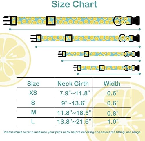 ✔Looking for a durable and fashionable Dog collar for your furry friend? Our designer Dog collars, including sizes for both small and large dogs.Our summer dog collar features a cute Lemon design, perfect for the stylish girl dogs and boy dogs. ✔Add a pop of color to your dog’s wardrobe with our vibrant Yellow and Green Dog collars – perfect for summer! ✔Keep your pup comfortable and stylish with our lightweight and breathable Dog collars in fun fruit and lemon prints. ✔Whether you’re looking for a pretty girl Dog collar or a cute boy Dog collar, we’ve got you covered with a range of personalized and patterned options. ✔Upgrade your pet’s style this spring and summer with our summer dog collar spring dog collar, available in a variety of sizes to fit small dogs, medium dogs and large dogs alike. For specific dimensions, please refer to the dimension table. please use a soft ruler measuring and make sure to leave only two fingers between the collar and the dog’s neck for the perfect fit.