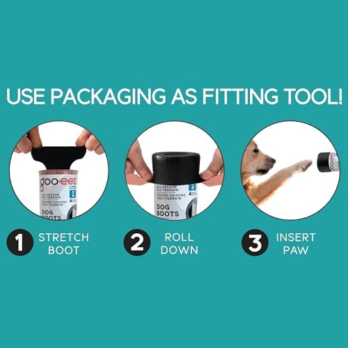 Goo-eez Lites All Season Dog Booties. Easy to fit-on, they stay on! Ideal for everyday use, Goo-eez Lites All Season Dog Booties feature our signature patented form-fitting gel, that acts as a glove on paws, guaranteeing comfort and shock absorption, and our specially weaved rib fabric that stretches up to 3x for easy fit-on experience and best mobility. All Season. ~ Good for all weather types. Protects from hot & cold surfaces. 100% Waterproof ~ Inside-out materials are 100% waterproof. Easy On ~ Easy to fit on your dog’s paws thanks to our easy fit-on methods. Gel Comfort Form-fitting to dog’s paws. No Pinching. No Pulling. ~ Stretchable Boot stretches up to 3 times its size to gain the perfect fit. Care For the first use, turn the boot inside out, rinse under lukewarm water, then pat dry. This will maximize the grip on your dog’s paws. After use, if not soiled, turn the boot inside out and rinse under lukewarm water, then pat dry. If soiled, hand wash with a gentle detergent and warm water inside-out. Do not machine wash. Hang to dry. Fitting Instructions Insert two index and middle fingers on either side of the boot, using your thumbs. Squish down so you see the inside bottom of the boot as you would for a pair of human socks. Face your dog, stretch boot’s opening to its maximum and insert the dog’s front paw with a top-down approach. Continue to shimmy the boot until the paw is fully covered and smooth out the rest of the boot until it covers the lower leg entirely. Make sure to adjust the boot until you ensure that boot slide all the way to the front of paw. Repeat on all other paws. To remove boots, simply roll down and pull off. Product Dimensions : 0.79 x 5.12 x 5.91 inches; 3.9 ounces Item model number : 1000 Date First Available : December 9, 2022 Manufacturer : GOO EEZ ASIN : B0BP8DGL51