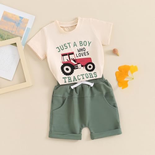 Gueuusu Toddler Baby Boy Summer Outfit Just A Boy Who Loves Tractors T Shirt Jogger Shorts Farm Country Baby Outfit