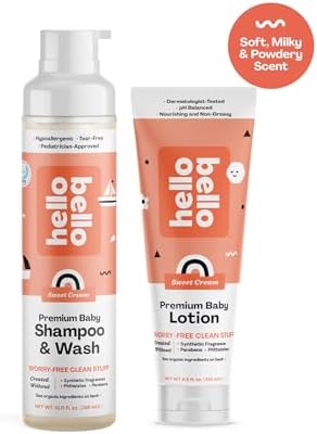 Hello Bello Extra Gentle Shampoo & Body Wash I Tear Free, Hypoallergenic and Pediatrician Tested Plant Based Formula for Babies and Kids I Sweet Cream Scent I 10 FL Oz (1 Pack)