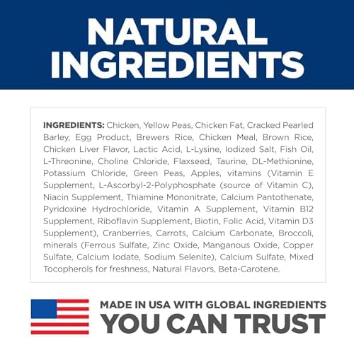 Your adult cat needs a pet food that supports healthy digestion, shiny fur, lean muscles and a healthy immune system. Hill’s Science Diet Adult No Corn, Wheat, Soy dry cat food is made with high-quality, easy-to-digest ingredients and is specially formulated to fuel the energy needs of cats during the prime of their life. A cat food made with natural ingredients, Hill’s Science Diet Adult No Corn, Wheat, Soy provides vitamin E plus omega-3 and omega-6 fatty acids to nourish your cat’s skin. Packed with high-quality protein, this premium cat food also helps your grown cat maintain lean muscles. Additionally, this adult dry cat kibble provides your grown cat with essential taurine and balanced minerals to support heart health, bladder function and kidney function. Product Dimensions : 9 x 5 x 13 inches; 7 Pounds Item model number : 604954 Date First Available : January 2, 2020 Manufacturer : Hill’s Pet Nutrition Sales, Inc. ASIN : B083FHLDZ5 Country of Origin : USA