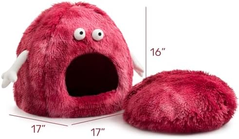 Hollypet Cat Beds for Indoor Cats, Cat Bed Cave, Cat House with Washable Cushion, Cat Bed Small for Kittens, Small Pets, Cat Tent Sleeping Bed, Cat Bed Warmer Pet Nest, Red Monster