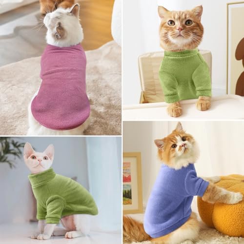 【SOFT AND ANTI-ALLERGY】Our warm hoodie specially made for the Hairless Cats, is particularly soft, thick, skin-friendly, anti-pilling, self-heating and heat storage. Your pets won’t get allergic any more with this sweater.Perfect for Sphynx Cat, Devon Rex Cat, Cornish Rex Cat and Peterbald Cat. 【KEEP WARM】As we all know, Sphynx cats have the most sensitive skin. Especially in winter, hairless cats need warm clothes to keep warm; Wearing this cats winter warm faux fur sweater can provide your pet with full warmth, comfort and gentle feeling and protection during the colder seasons.Also you can add other shirts to match the sweater to get a cute look. 【HIGH ELASTIC】This basic cat sweater features 2 legs and semi-turtleneck design,and well designed according to the cats’ body Lines, so it perfect fit their body.High stretch fabric and pullover style makes it easy to put on and off. 【MORE APPLICATION】This fashion Turtleneck Sweatershirt are easy to match for Everyday Wearing, Sleeping Pajamas, Photo Taking, Party Costumes, Holidays, Festival Occasion, etc. Suitable for cats, puppies indoor outdoor wearing. 【ATTENTION REQUIRED】The size standard of this shirt is suitable for hairless cats, other cats or puppies are recommended to choose a larger size. For the comfort of your pet, please measure your pet’s body size before purchasing.