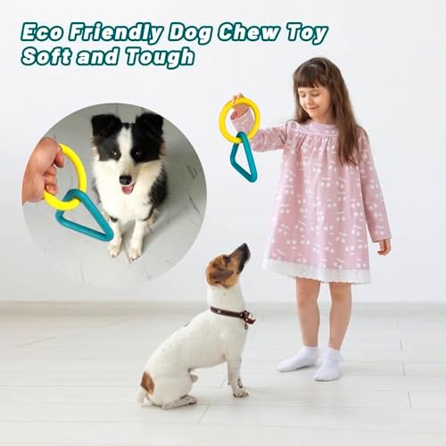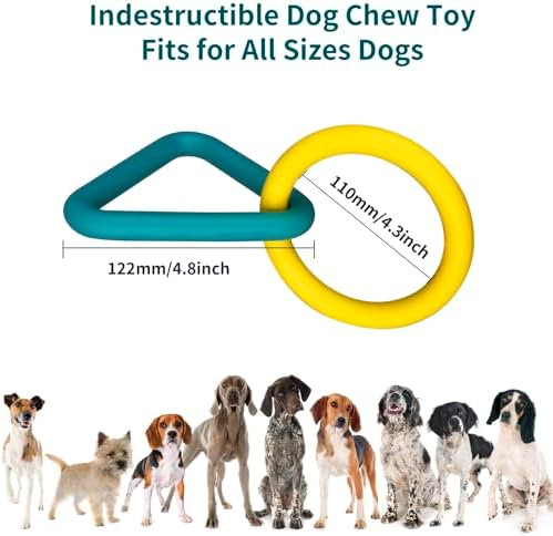 Interactive Durable Dog Chew Toys for Aggressive Small Medium Large Breed Chewers Indestructible Rubber Scented Chewing Triangle Ring Pull Dog Toys for Teething Training or Boredom