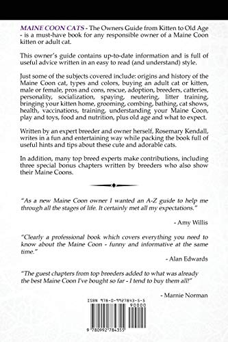 Written by an expert breeder and owner herself, Rosemary Kendall, writes in a fun and entertaining way about Maine Coon cats while packing the book full of useful hints and tips about these cute and adorable cats.