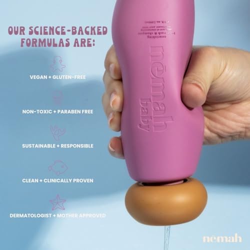 😊 MILD, TEAR-FREE FORMULA – Enjoy a fuss-free bath time with Nemah 2-in-1 baby body wash and shampoo. Like our other premium baby care products, this tear-free formula is perfect for babies, toddlers, and older kids alike. Its gentle nature makes it an ideal choice for any baby bath routine, ensuring a pleasant and cry-free experience. Trust our baby shampoo for a safe and comfortable wash.