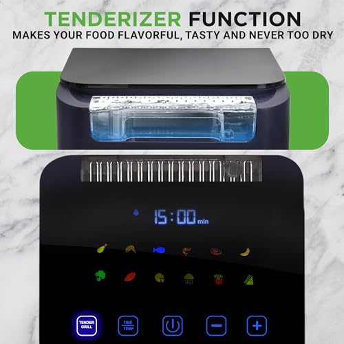 Nutrichef 6.3 QT Electric Air Fryer | 12-1 Preset Cooking Functions | Includes New Tenderizing Function | Digital Display | Transparent Window For Best Cooking Results | 14.05 x 10.51 x 13.97 | Blue