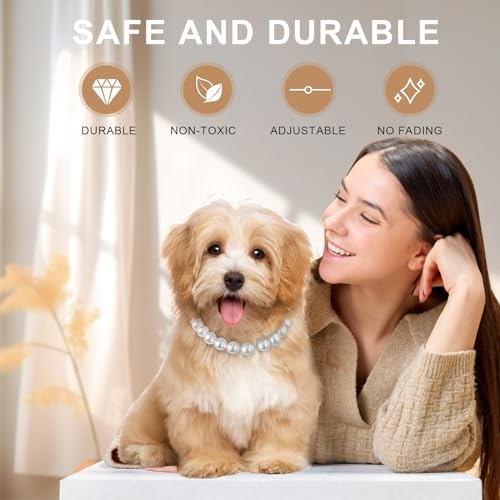 【French Romance】This necklace charm is carefully selected with sparkling pearls to be elegant and charm to your pet. They will shine like stars wherever they go ! 【Create a Noble Temperament】Pure and shiny pearls and direct and transparent aesthetic design create a necklace as perfect as moonlight, which will make the pet who wears it full of temperament. 【Adjustable Jewelry Clasp】The length of the necklace can be easily adjusted, making it easy to wear and secure. 【Optional Sizes】We have 5 lengths of necklaces for pets of different sizes. Before placing an order, please measure your pet’s neck circumference and refer to our size chart. 【Please Note】Pet pearl necklaces are only suitable for decorating our pets and are not suitable for leashes. She will love this necklace !