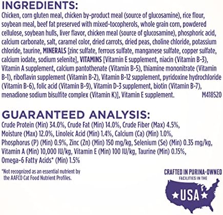 Great tasting chicken cat food kibble features deliciously crunchy bites and is crafted in Purina-owned, U.S. Facilities with no artificial flavors or preservatives