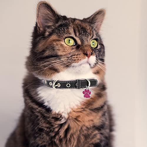 WHAT YOU WILL GET: Engraved leather collar with name and phone number, also a stainless steel paw shape personalized pet ID tag, which could engraved the info you provided or decorated the collar in case it rush out of the house or get lost when wandering. SOFT MATERIAL- The collar is made of double-layer materials. Outer layer is soft leather, while bottom layer is high-quality PU fabric, which will not harm your pets skin. And there are no sharp edges, the stitching is solid, beautiful and safety. FASHION DESIGN – This vibrant hand woven color rope will make your furry friends stand out among others. It is adjustable, stylish, strong and affordable. Simple but classy design, timeless and fit all season. STAINLESS STEEL NAMEPLATE – The text on the nameplate is printed by laser,NOT DEEP ETCHED, but it will never fade away. The black font color on the silver nameplate is easy to read and recognizable PREMIUM HARDWARE – High quality and heavy duty alloy buckle is more Sturdy than plastic material. The D-ring design allows you to not only fasten the dog belt and identity tag, making it easier for your dog to control around you, but also effectively fix the excess belt.