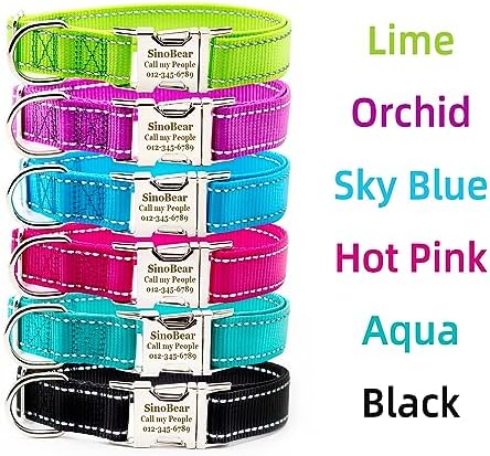 Reflective Personalized Dog Collar with Pet Name Phone Number Address for Small Medium Large Dogs Adjustable Size (XS S M L XL)