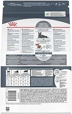 DENTAL CARE FOR CATS: Royal Canin Dental Care Dry Cat Food provides dental care nutrition for cats 1 year and older REDUCES PLAQUE FORMATION: Reduces the formation of dental plaque by 41% after 7 days of feeding this adult cat food exclusively* ORAL HEALTH: Precise nutrients for strong, healthy teeth support oral health SPECIALIZED KIBBLE: Exclusive cat kibble texture simulates a tooth-brushing effect that reduces plaque formation on teeth as they chew to help support dental hygiene COMPLETE AND BALANCED: 100% complete and balanced daily feline nutrition for adult cats