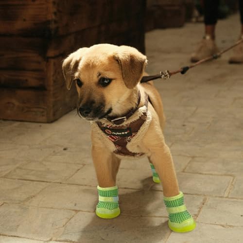 ROZKITCH 4PCS Dog Shoes for Small Dogs, Anti-Slip Dog Boots with Adjustable Magic Sticker Strap, Breathable Mesh Pet Paw Protectors to Prevent Licking, Running Shoes Indoor and Outdoor Green 4#