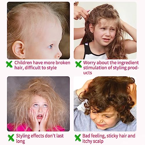 Natural vegetable gum. Greatly reduces damage to your child’s delicate hair.Mild ingredients and designed for children.The steps are simple and quick, saving time.Non-permanent products. Wash hair using shampoo can be easily washed.