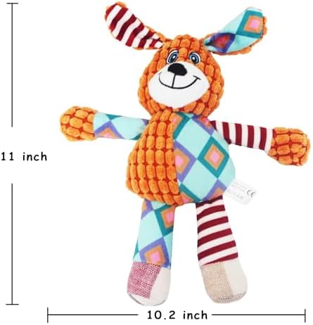 Quality Material: This funny dog toy is made of high-quality and durable corn fabric material and filled with pp cotton, which is safe for your dogs. Great plush toys for dog teeth cleaning and puppy teething. Funny Design: cute cartoon animal with vivid expressions and exquisite production are more likely to arouse pet’s interest in playing. The build-in sound device and crinkle paper will make squeaking sound to attract your dog attention. Size Detail: 11.4 x 6.3 inches/ 29 x 16 cm in height and width. Weight is about 80g/ 2.82oz per toy. Suitable for small and medium-sized dogs to play indoor and outdoor . Reduce Anxiety: Our furry friends are mentally fragile and might suffer from depression and loneliness when we not at home. These are not only teeth-cleaning toys, but also a playmate to help them reduce anxiety, boredom and destructive behavior. Good for dog’s mental and physical healthy! Quality Warranty: This dog toy set is an ideal gift for holidays such as Christmas, St. Patrick’s Day, Easter, etc. If you have any questions about our product, please feel free to contact us, we are always ready to help you.