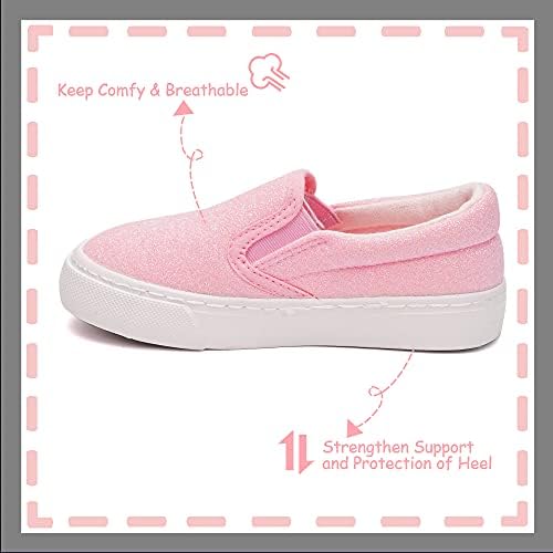Lightweight and BreathableExtra Soft Insole Provides Feet Room to Move and GrowWith Deep Pattern On the Rubber Sole for Non-SlipSlip On, Low Top Sneaker with Soft Canvas UpperGlimmer Sequins Design