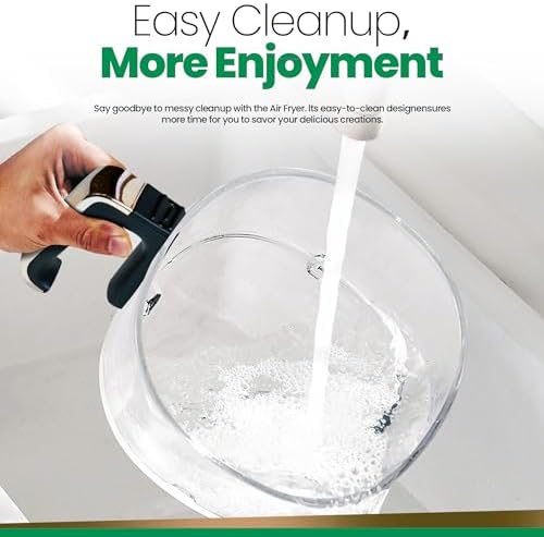 [Safety Design, Easy Cleaning] Our air fryer features a safety design that automatically powers off when the basket is removed. Replace the basket within 10 minutes, and it seamlessly resumes cooking under the current program. This convenient feature lets you check on cooking or add seasoning hassle-free. The uncoated glass basket makes cleaning a breeze—simply pop it in the dishwasher and free yourself from scrubbing.