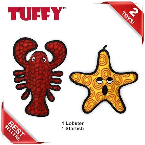 TUFFY – World’s Tuffest Soft Dog Toy – Ocean Larry Lobster -Squeakers – Multiple Layers. Made Durable, Strong & Tough. Interactive Play (Tug, Toss & Fetch). Machine Washable & Floats. (Combo Pack)